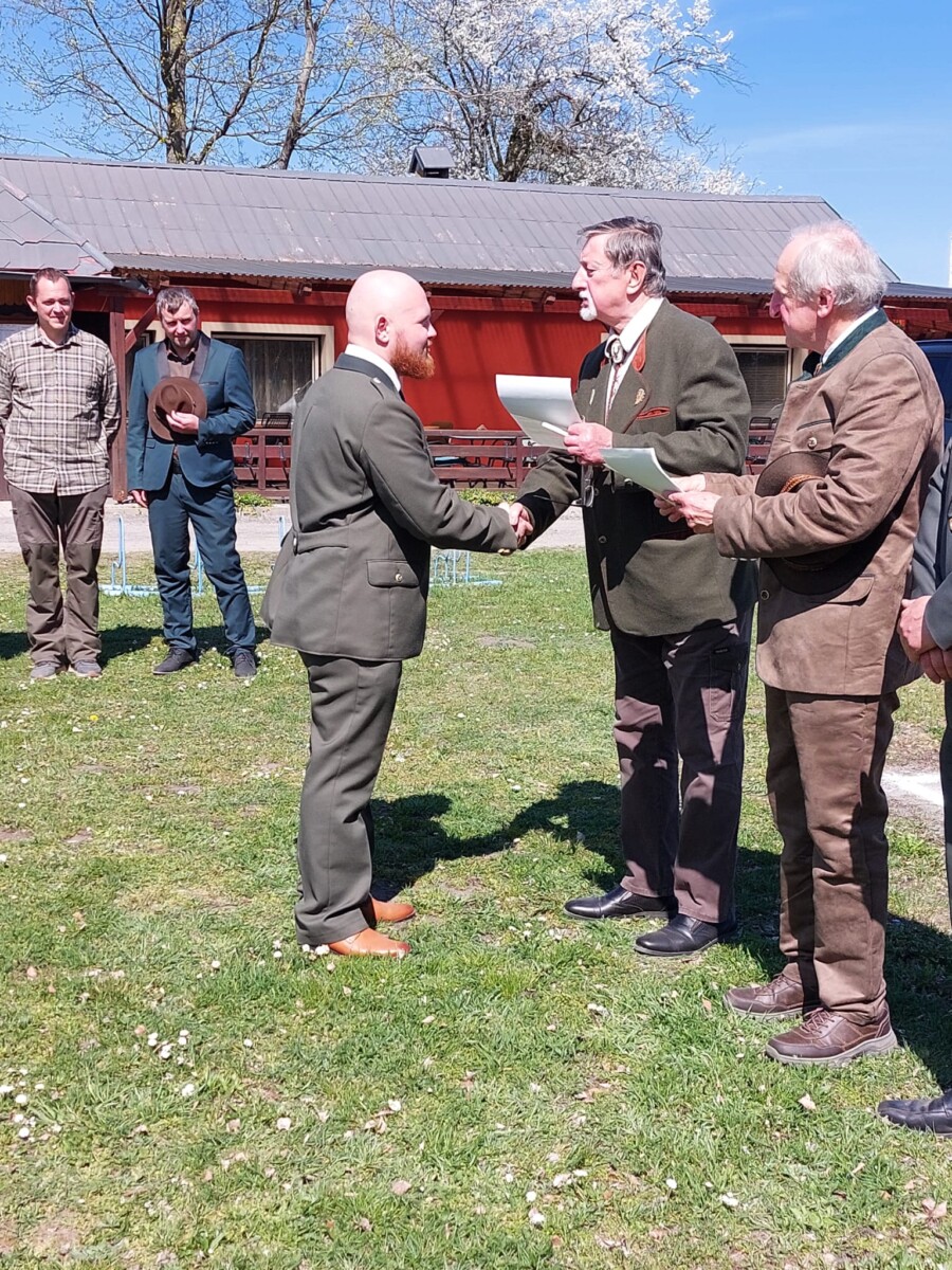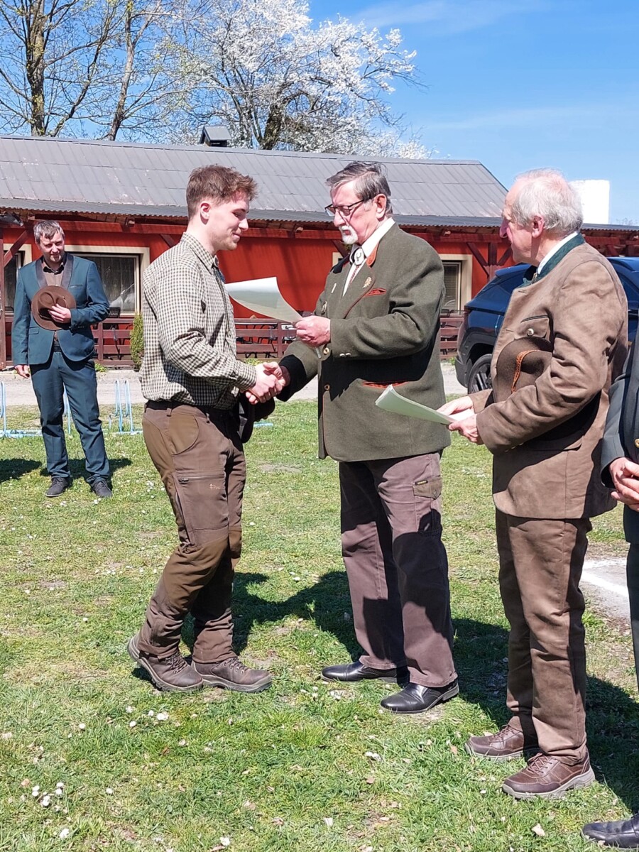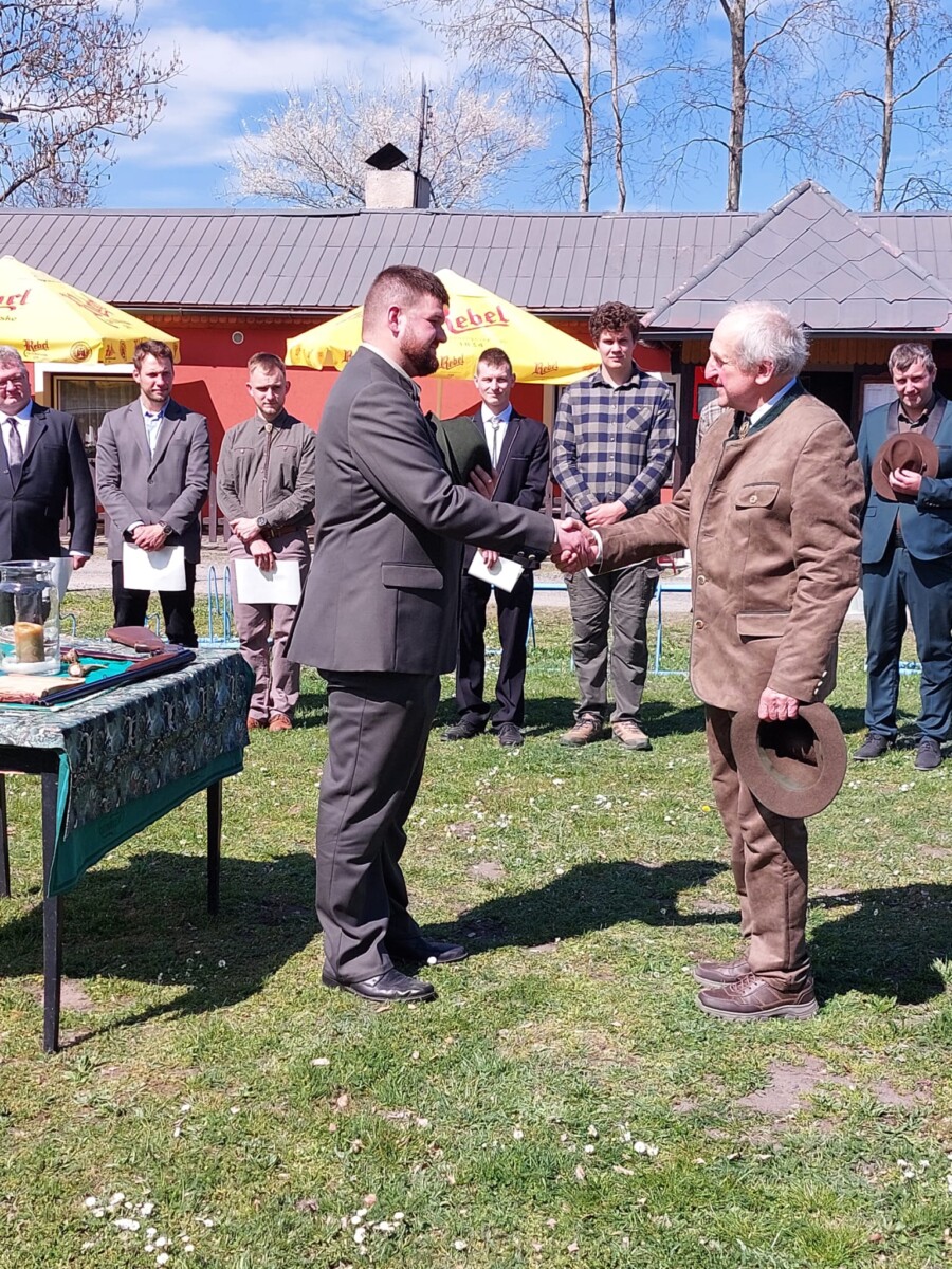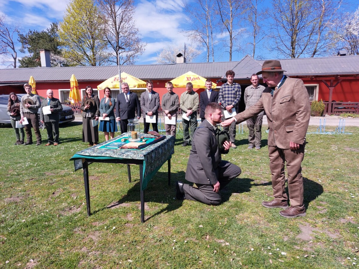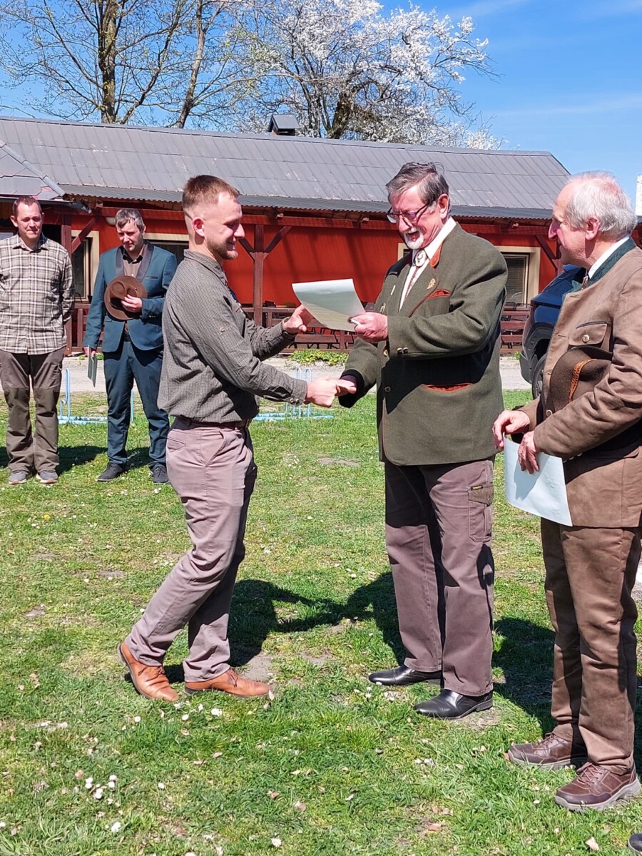 Jak bývá dobrým zvykem, nejlepší adept kurzu je při slavnostním vyhlášení přijat mezi myslivce. I u nás tomu nebylo jinak. Tímto slavnostním aktem byl pověřen pan Miroslav Docháček, dlouholetý člen OMS Svitavy a zároveň člen dozorčí rady ČMMJ, který byl po celý den přítomen průběhu zkoušek a ve své funkci dohlížel na jejich řádný průběh, zda proběhly bez jakýchkoliv pochybení.