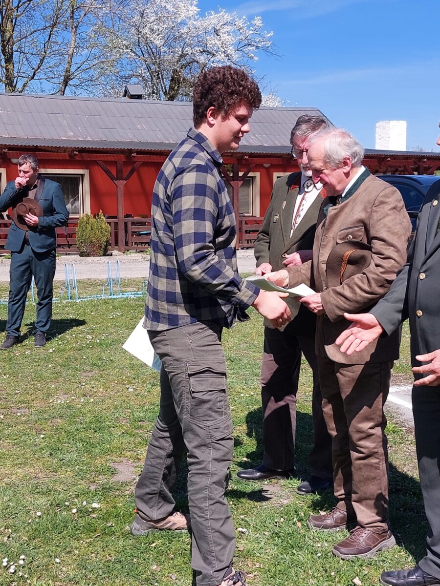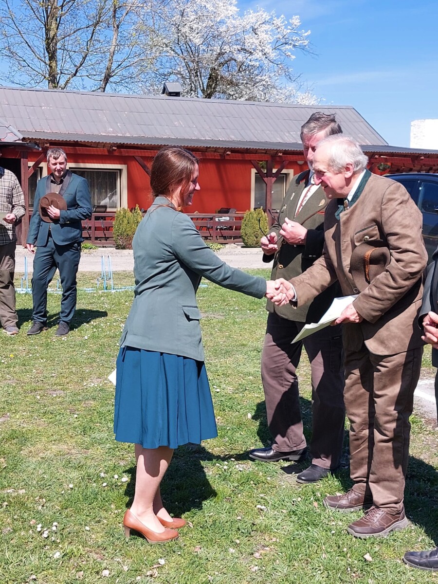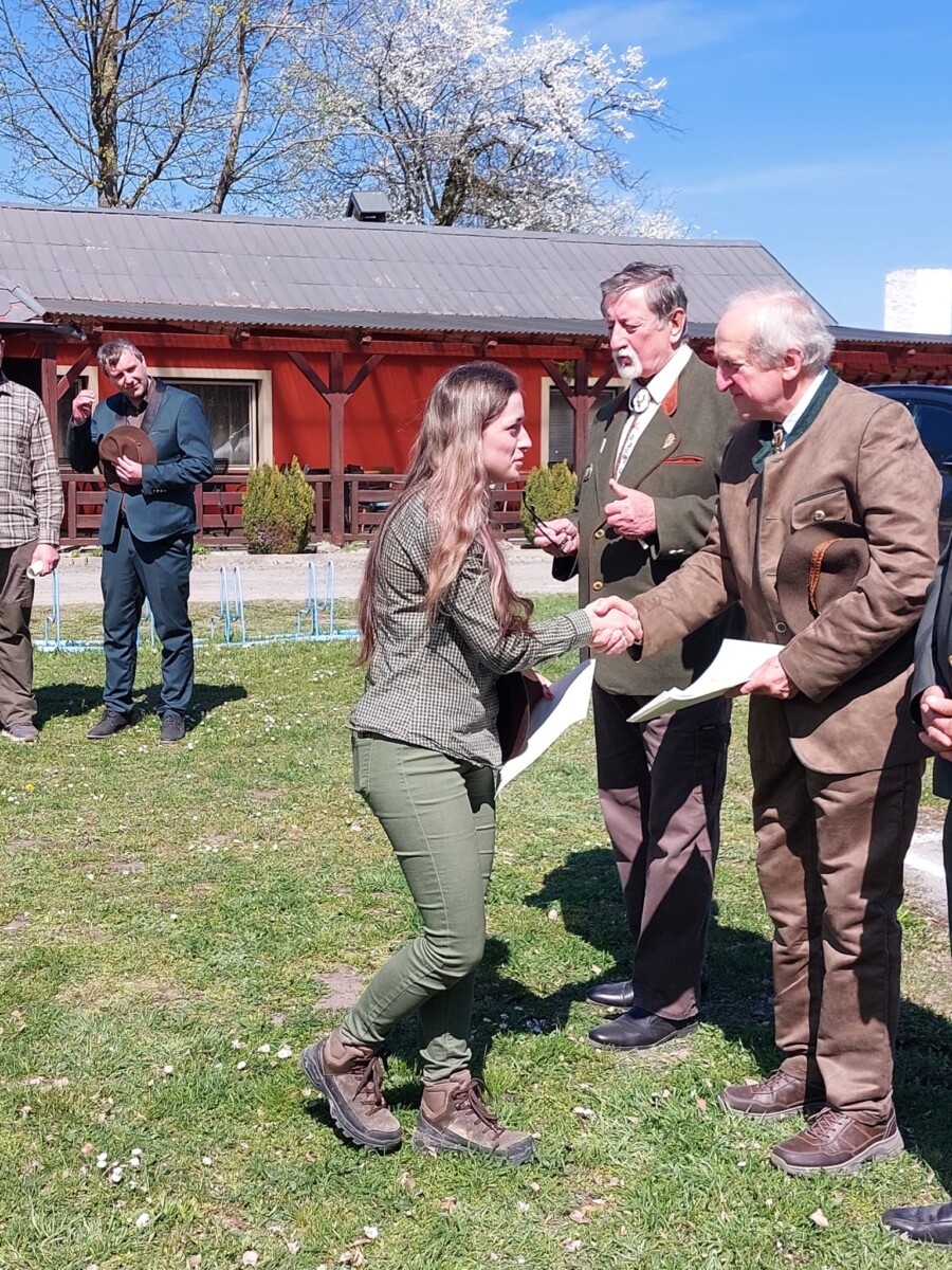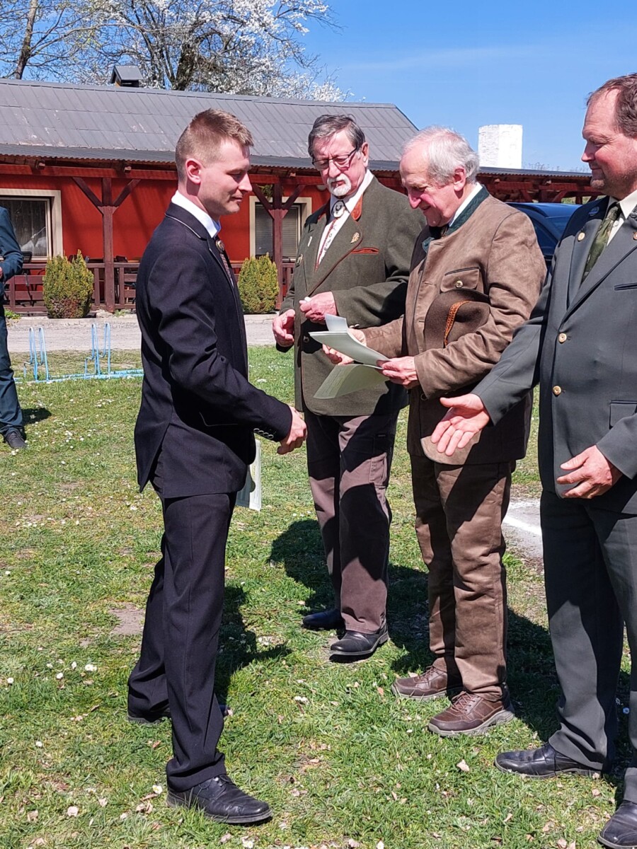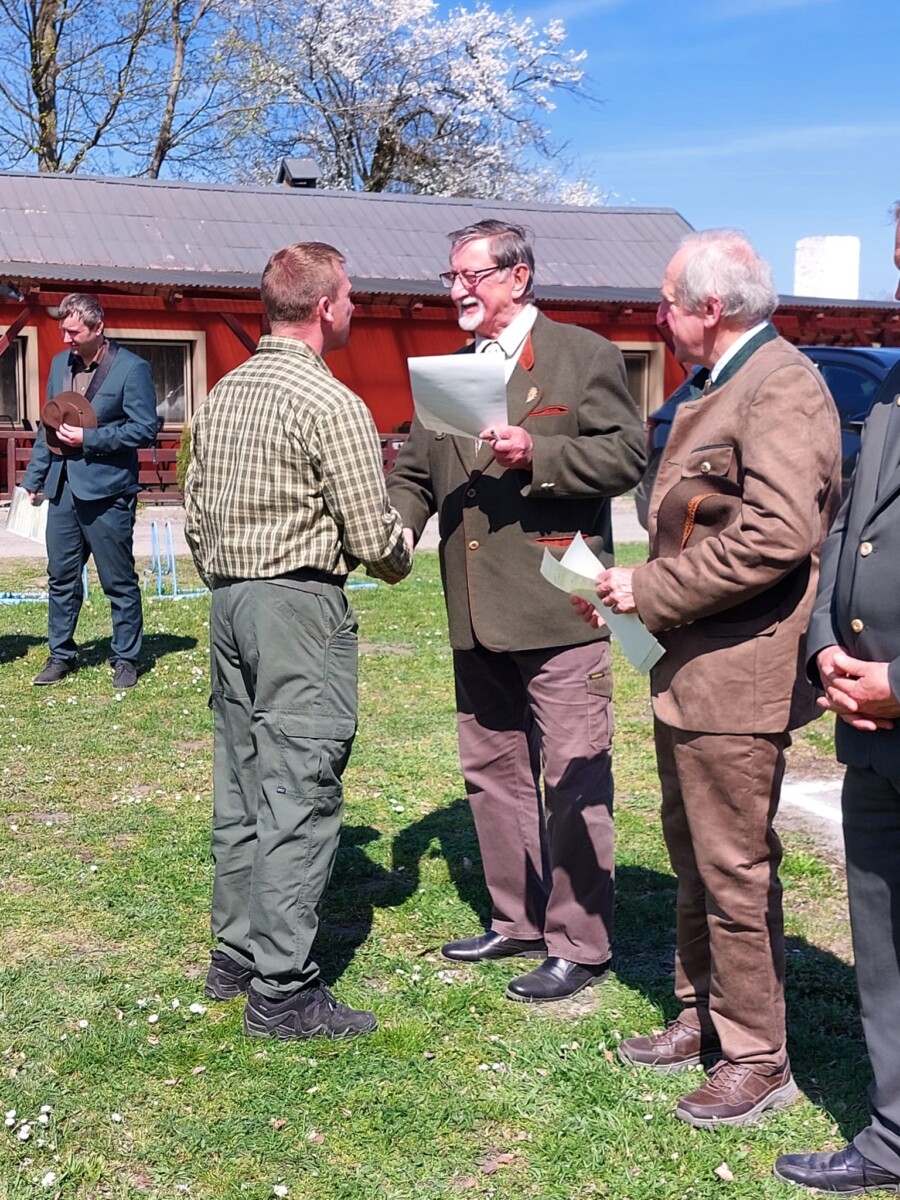Jak bývá dobrým zvykem, nejlepší adept kurzu je při slavnostním vyhlášení přijat mezi myslivce. I u nás tomu nebylo jinak. Tímto slavnostním aktem byl pověřen pan Miroslav Docháček, dlouholetý člen OMS Svitavy a zároveň člen dozorčí rady ČMMJ, který byl po celý den přítomen průběhu zkoušek a ve své funkci dohlížel na jejich řádný průběh, zda proběhly bez jakýchkoliv pochybení.