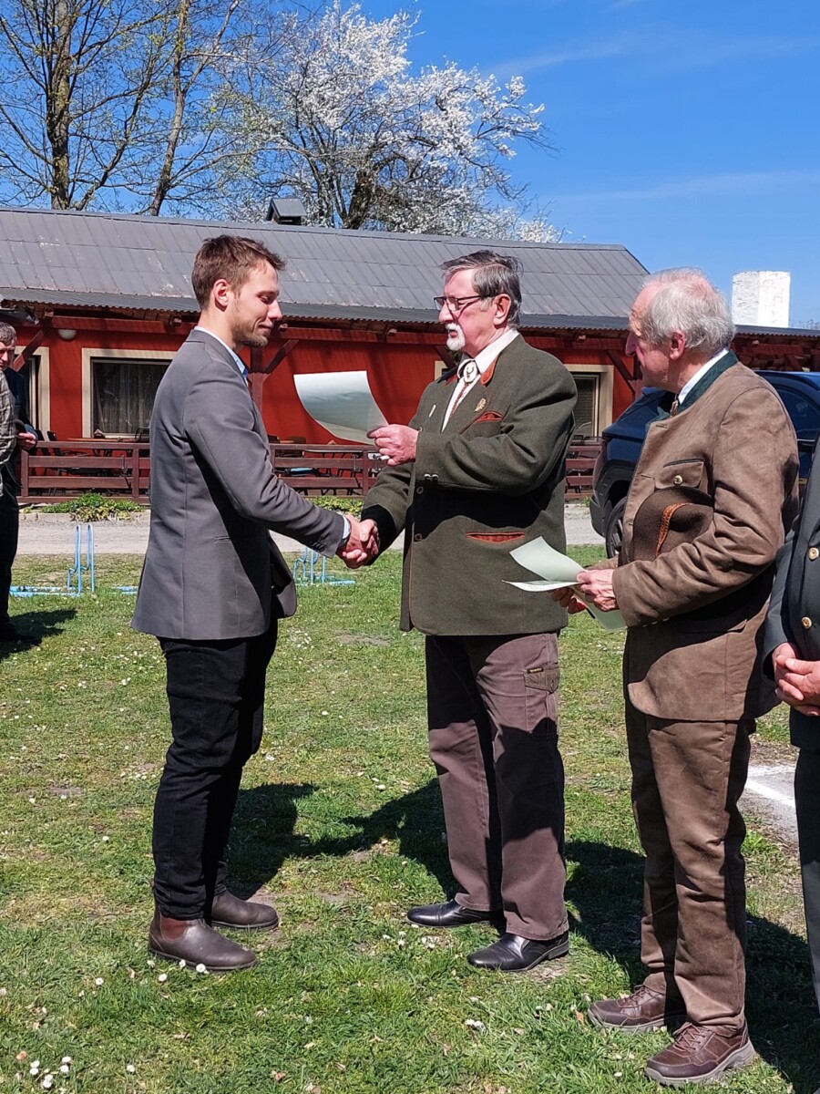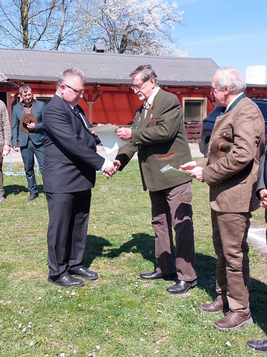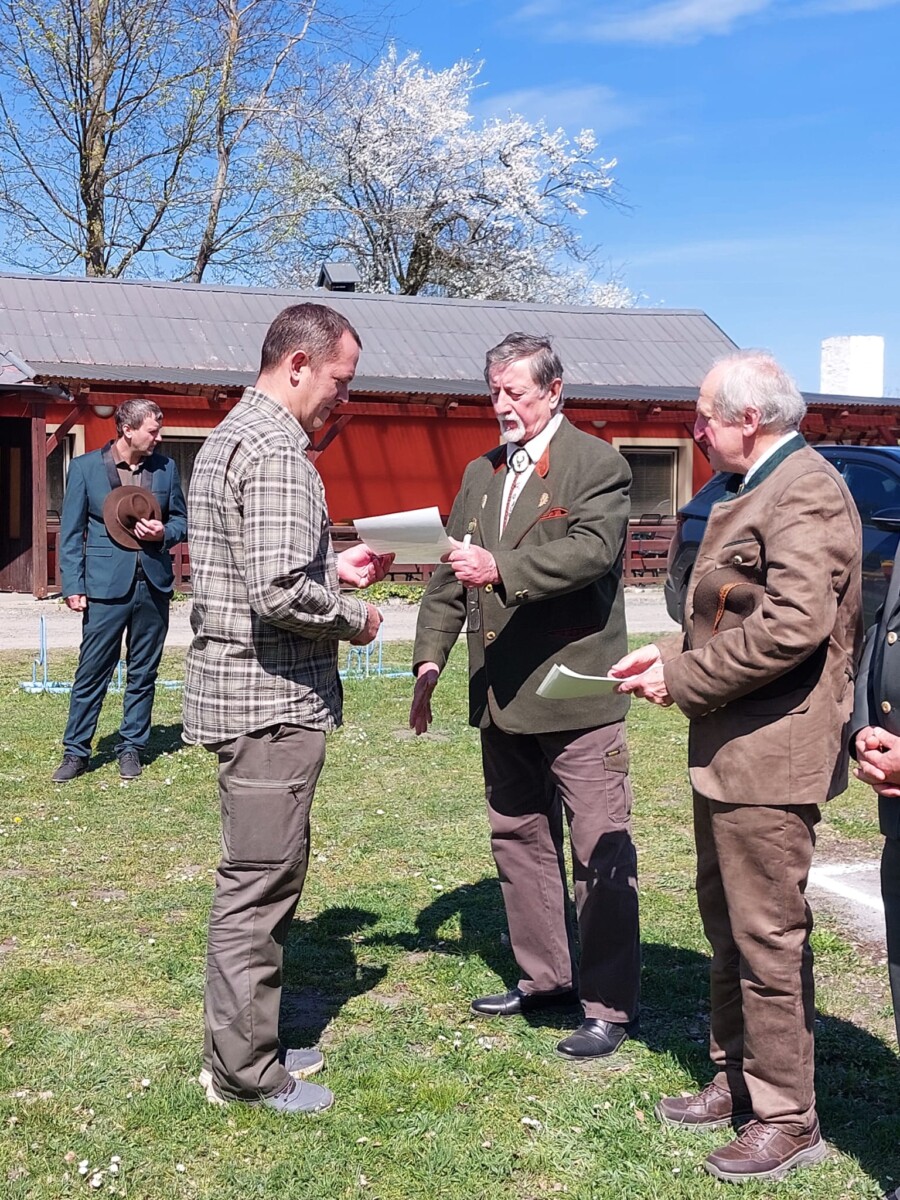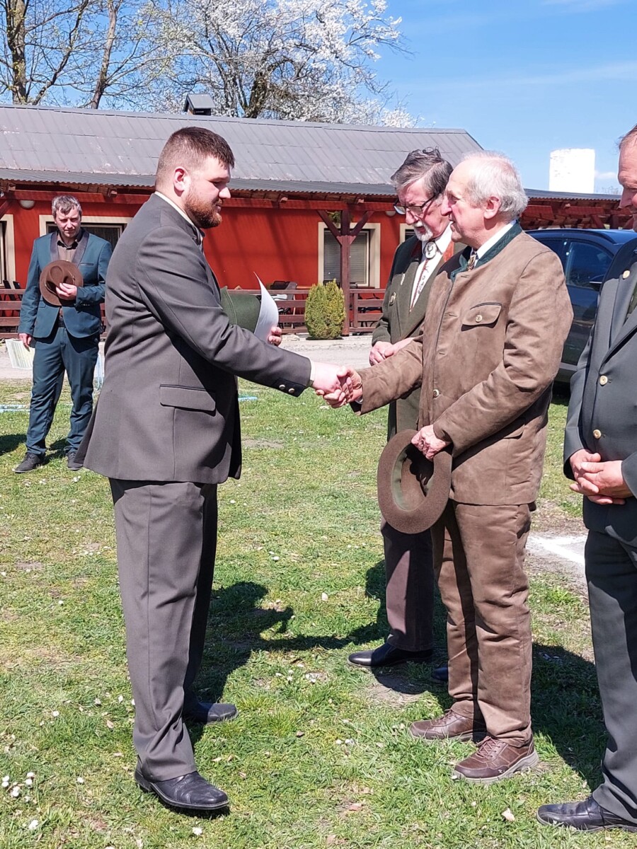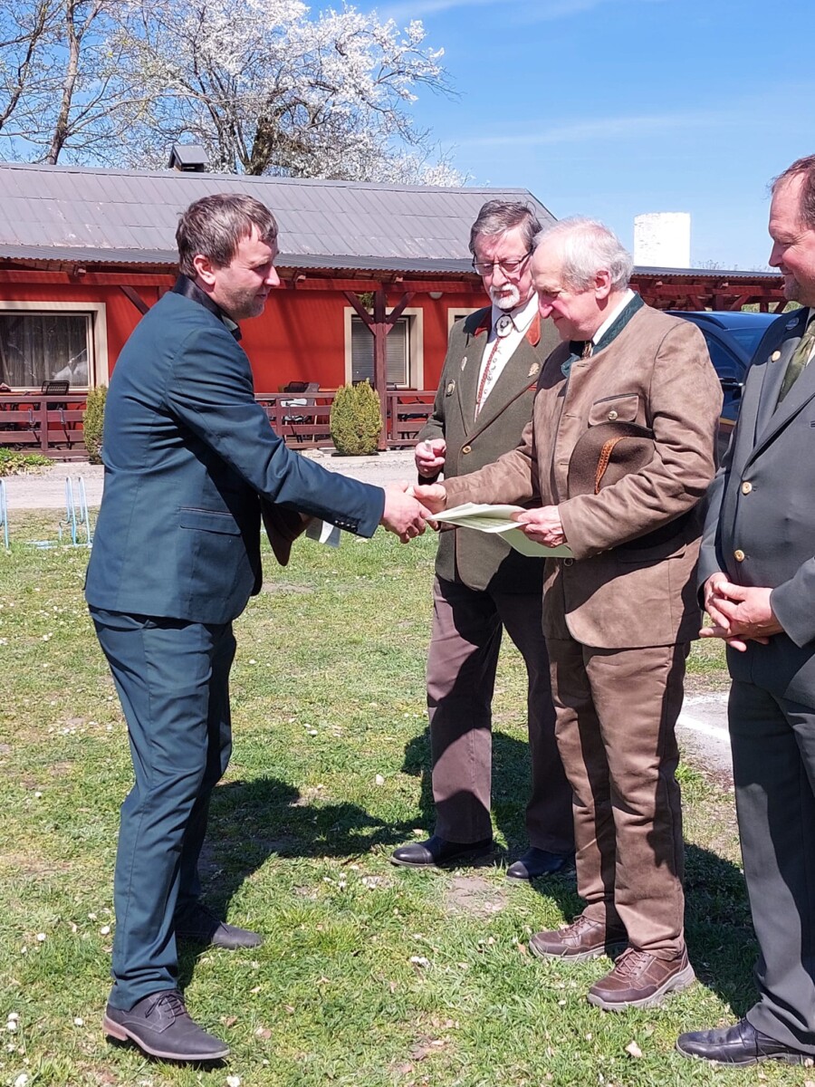 Mohl tak osobně stvrdit oprávněnost přijetí pana Reného Matějky mezi myslivce a celý slavnostní akt sám provedl. Po přijetí byly panu Matějkovi předány upomínkové dary, aby měl na tento významný myslivecký den trvalou památku.