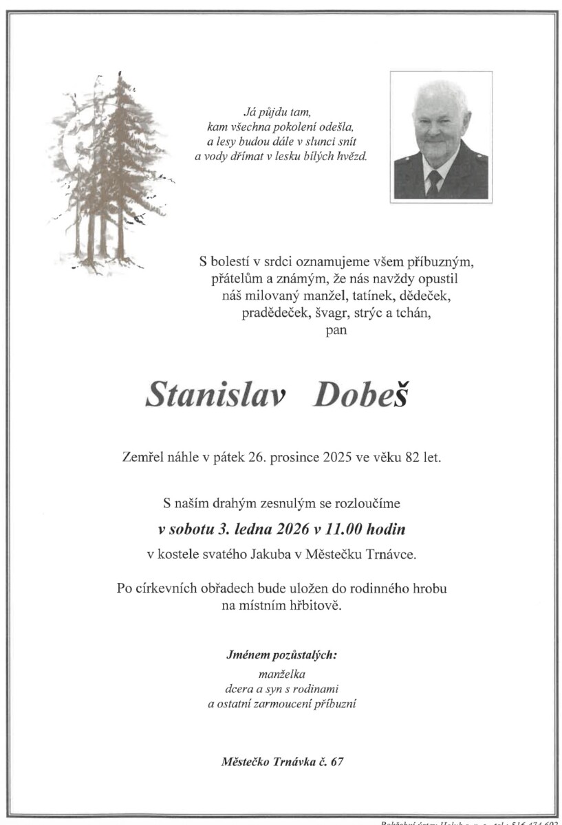 Dovolte nám Vás informovat, že dne 26. 12. 2025 nás navždy opustil kamarád a dlouholetý člen OMS Svitavy pan Stanislav Dobeš.