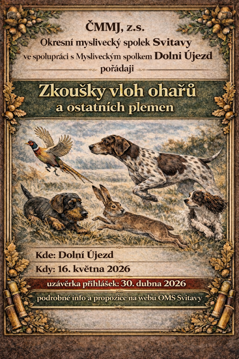- 9:00 hod. – zahájení zkoušek a přesun do honitby